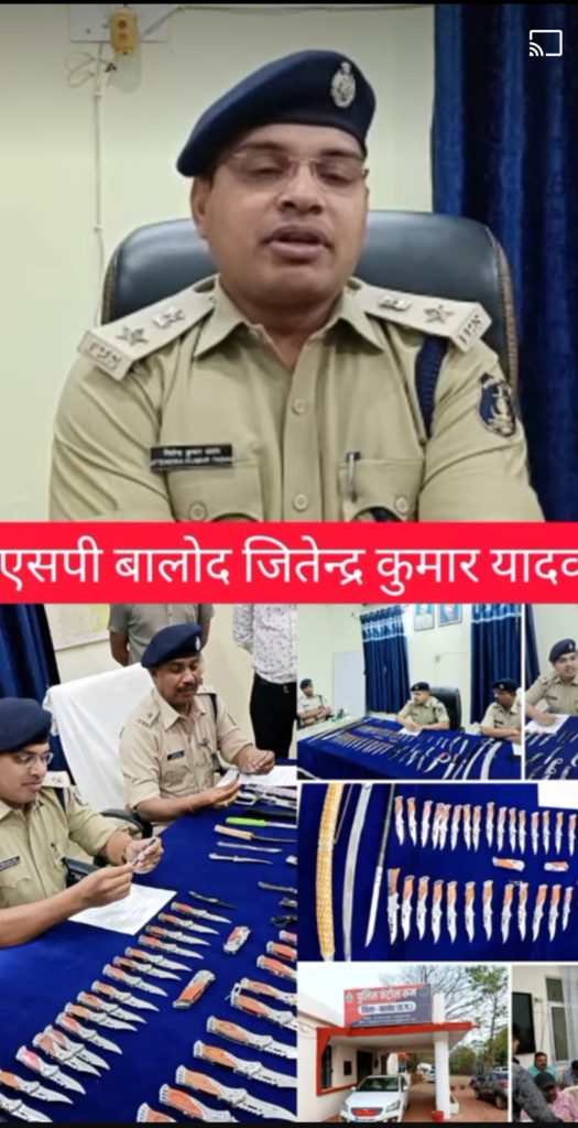 वर्ष 23 मे की गई कार्यवाही की तस्वीर ऑनलाइन माध्यम से चाकू और तलवार मंगाने वाले नाबालिगों की उम्र 13 से 17 वर्ष के बीच है। जब पुलिस को इस बात की जानकारी मिली, तो उनके माता-पिता को सूचित कर उनके समक्ष चाकू जमा कराया गया था और उन्हें समझाइश भी दी गई थी । बालोद जिले में 134 लोगों की तस्दीक की गई थी , जिनसे पेन चाकू, बटन चाकू और बड़ी तलवार जब्त की गई थी!