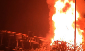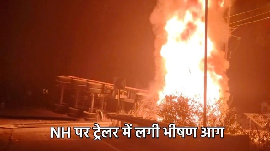 बताया जा रहा है कि ट्रेलर हैदराबाद की ओर जा रहा था। हादसे के बाद काफी देर तक वाहन चालक का कोई पता नहीं चल पाया। आशंका जताई जा रही है कि चालक की आग में झुलसकर मौत हो गई है।